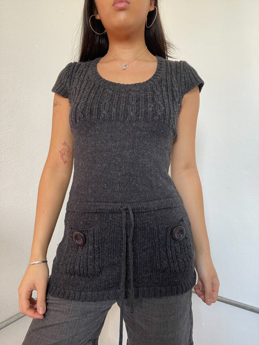 Sold outDark Grey Knitted Dress Tunic Top