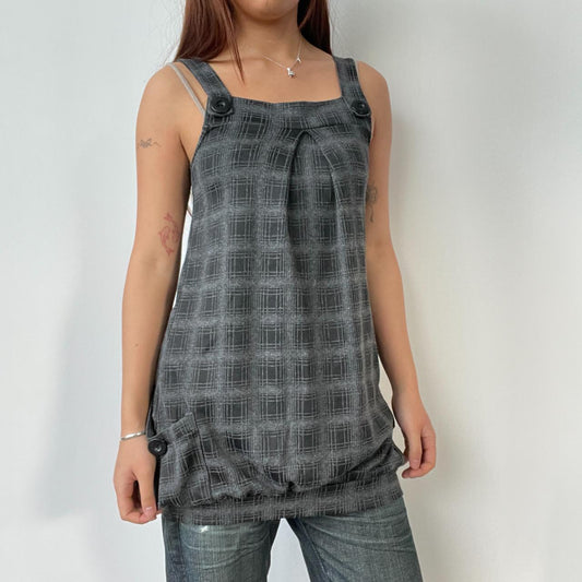 Grey Checkered Pinafore Dress Top