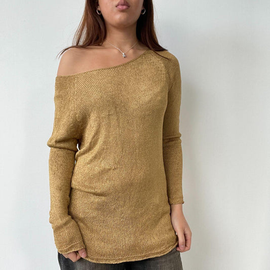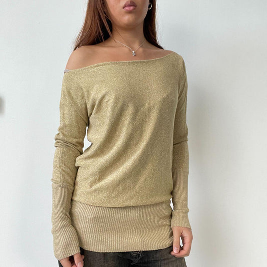 Gold Off The Shoulder Knit Dress Top