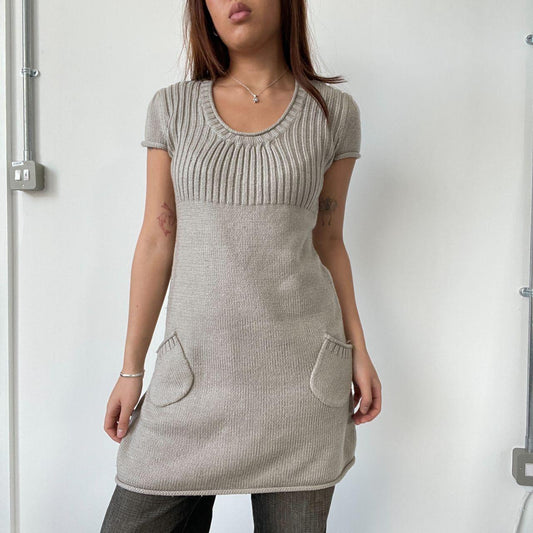 Beige Knitted Babydoll Dress Top