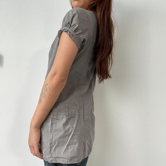 Sold outGrey V-Neck Bubble Hem Dress Top