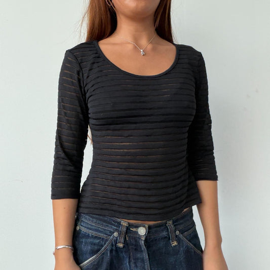 Vintage Black Sheer Gathered Long Sleeve
