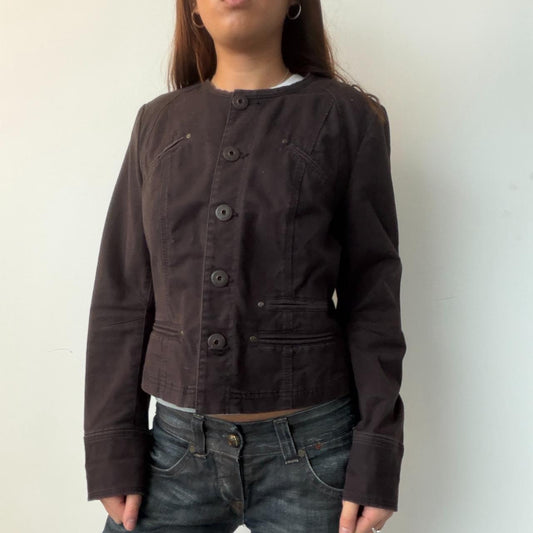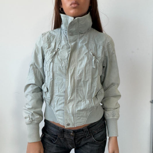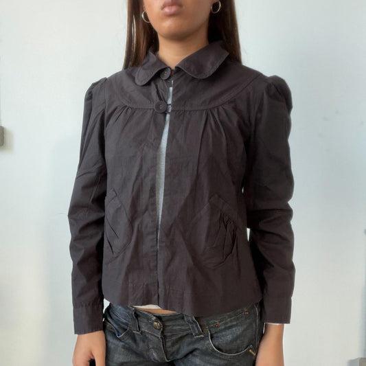 Vintage Grey Comptoir Des Cotonniers Military Leather Jacket