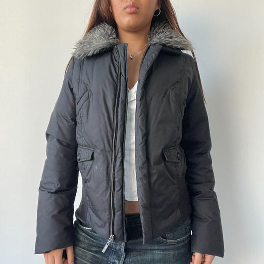 Black Fur Collar Fitted Jacket