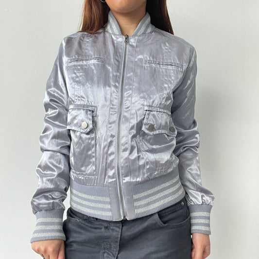Silver Boxy Biker Jacket