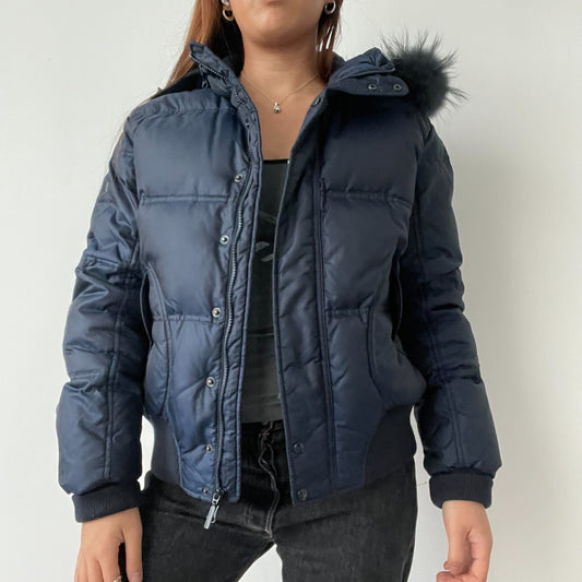 Blue Hooded Puffer Bomber Jacket