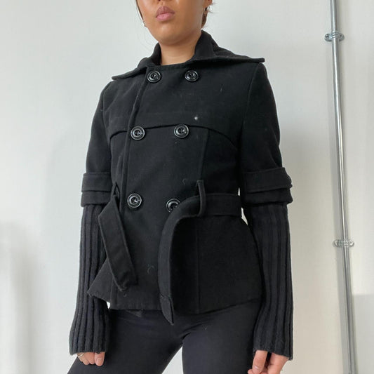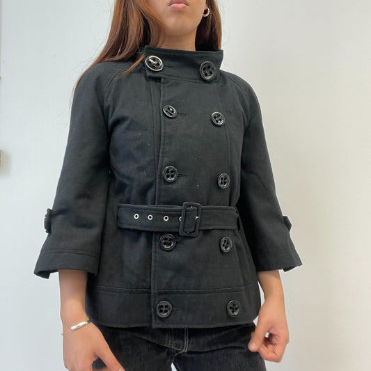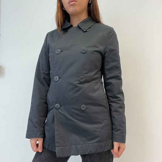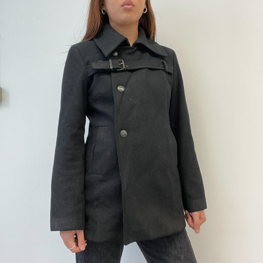 Black Asymmetric Double Button Peacoat