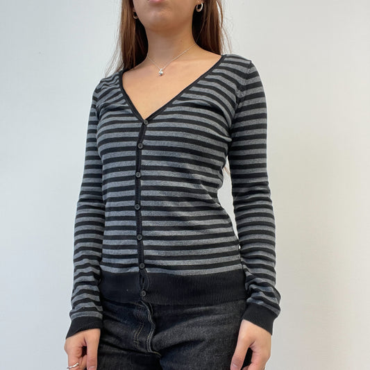 Sold outBlack And Grey Stripy Cardigan