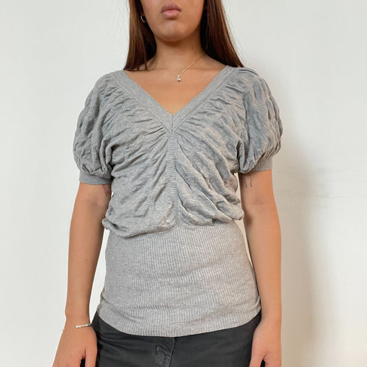 Sold outGrey V-Neck Bubble Hem Dress Top