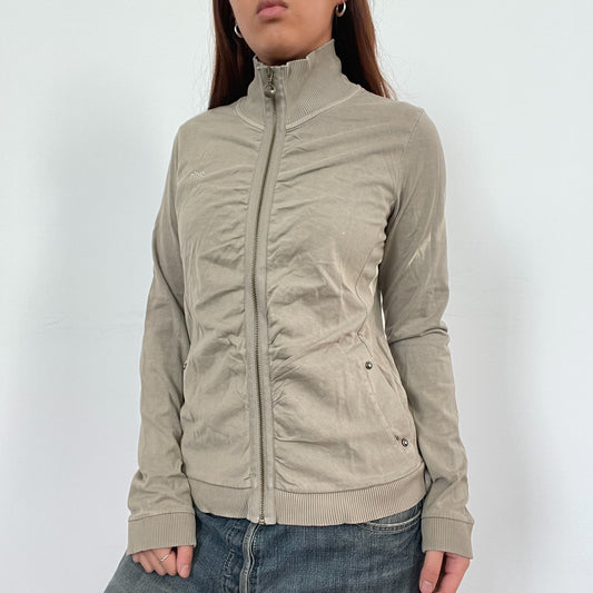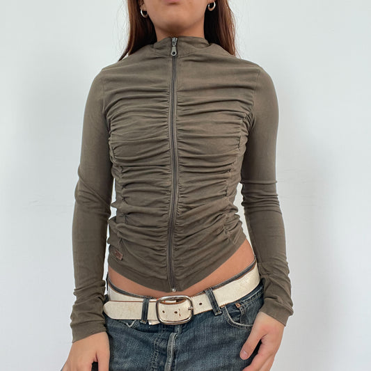 Sold outVintage Khaki Ruched Zip Up Jumper