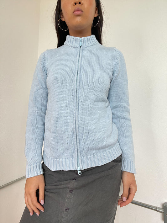 Sold outBaby Blue Ribbed Double Zip Jumper