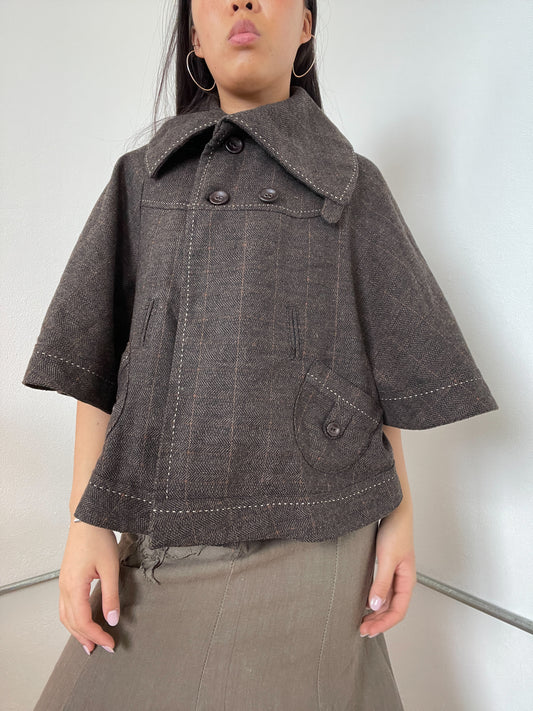 Brown Collared Cropped Swing Jacket
