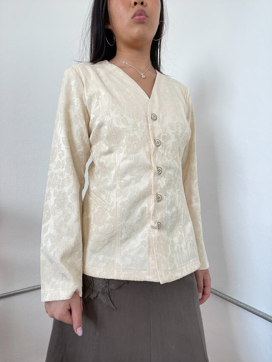 Cream Floral Button Up Shirt Jacket