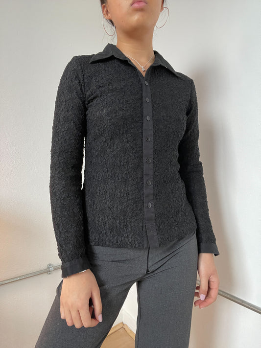 Cop Copine Black Shiny Asymmetric Shirt Jacket