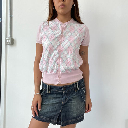 Pink Argyle Button Up Top