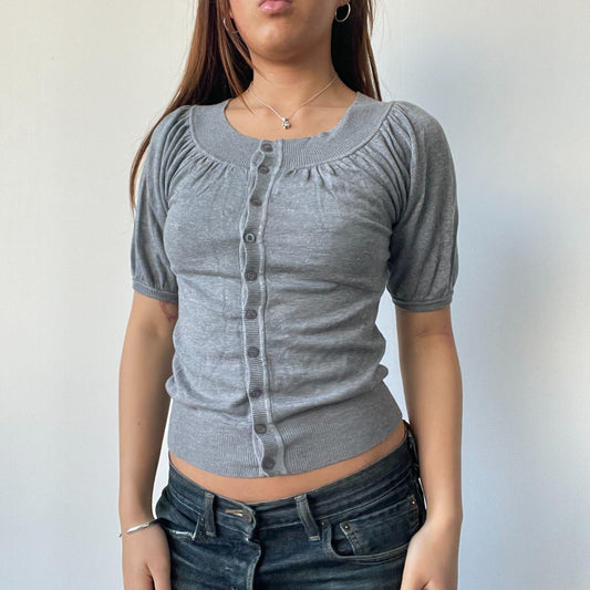 Grey Knitted Cardigan Top