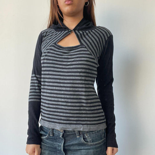 Sold outBlack/Grey Stripy Hooded Top