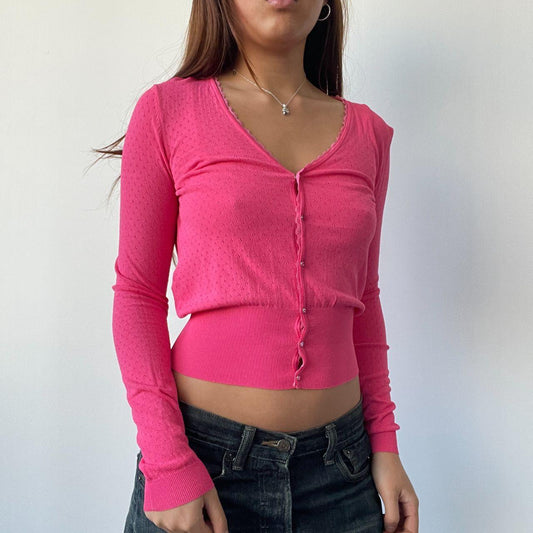 Sold outHot Pink Pointelle Cardigan Top
