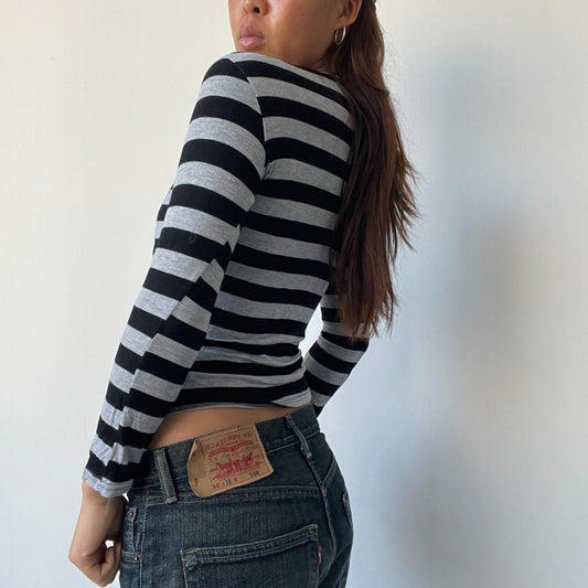 Black/Grey Stripy Wrap Top