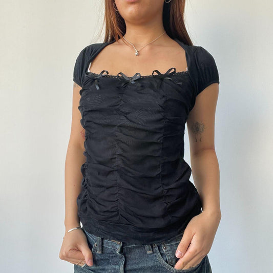 Black Ruched Milkmaid Top