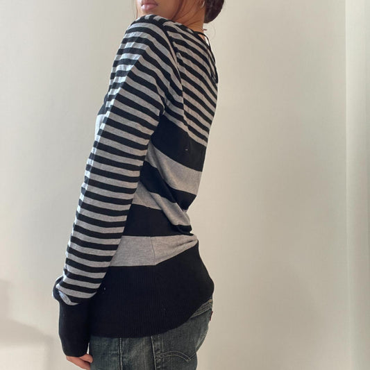Sold outBlack/Grey Stripy Cutout Bolero Top