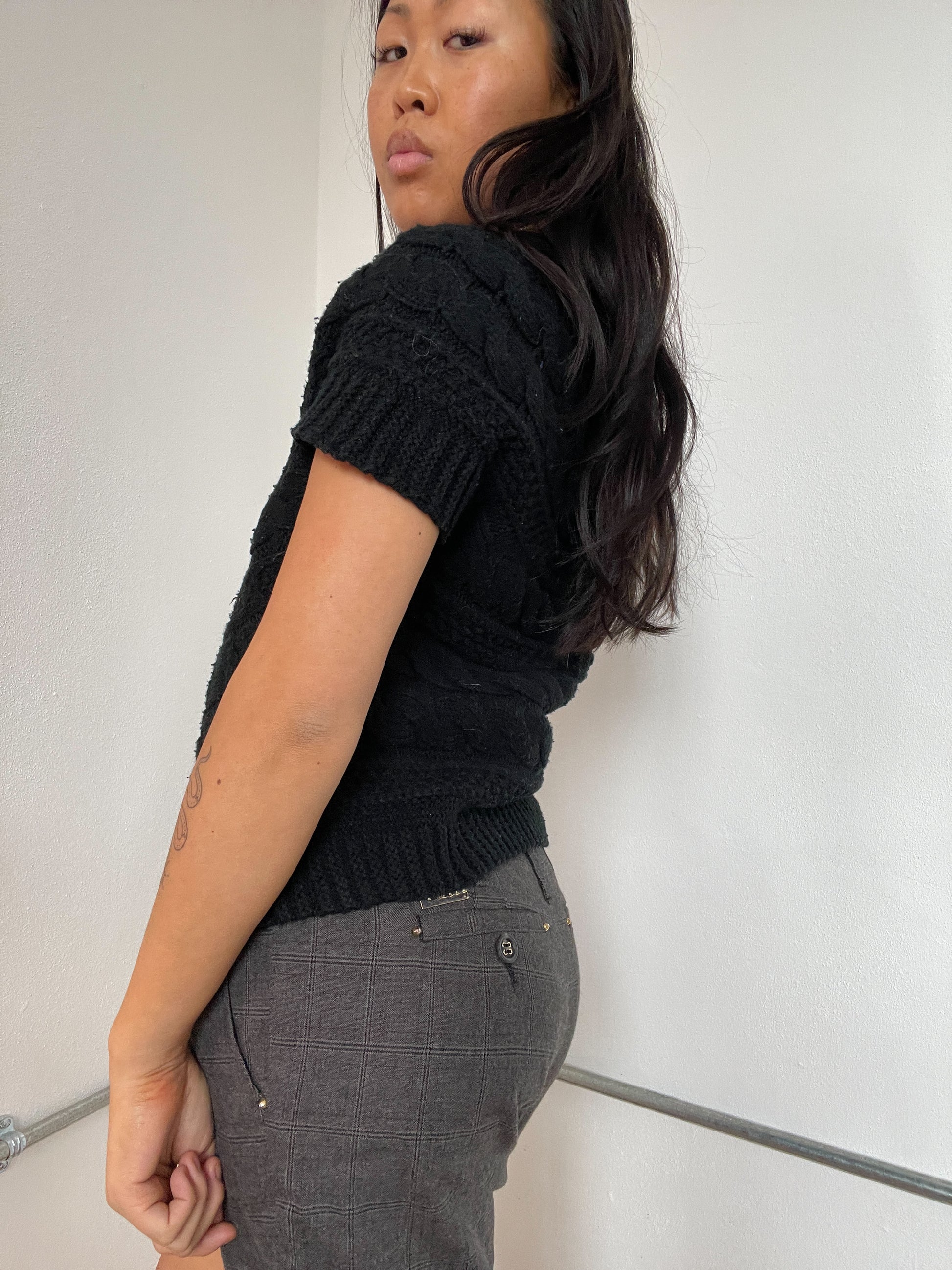 Vintage black knitted swing cardigan, two-button fastening for an open fit