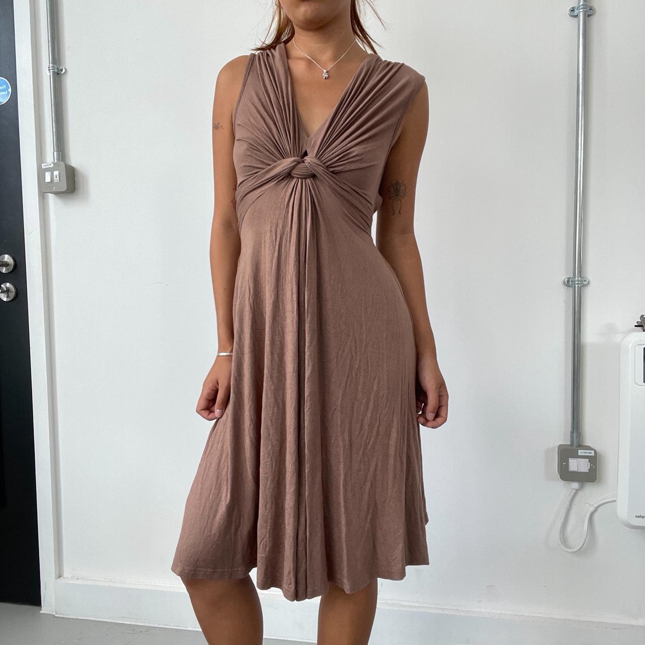 Vintage Brown gathered dress , stretchy material , size S-M