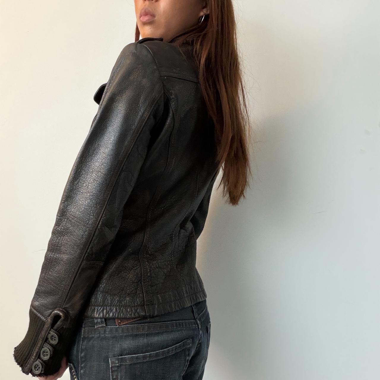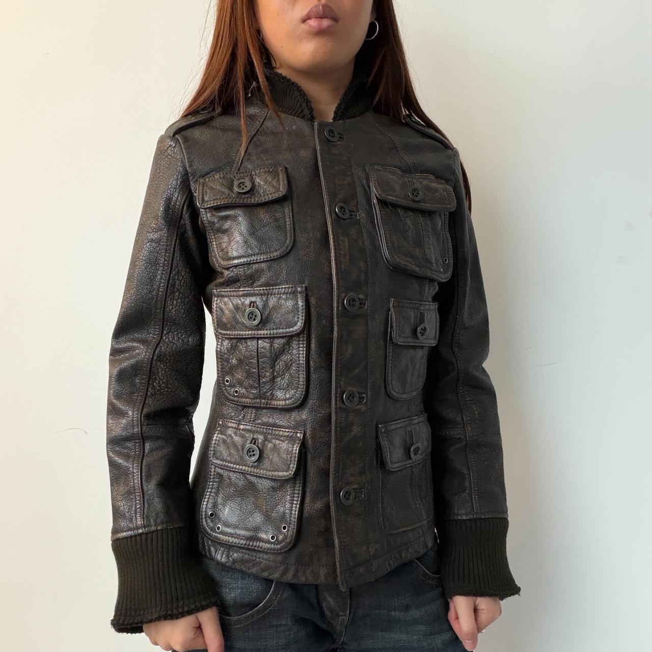 Vintage brown leather button up jacket• size S