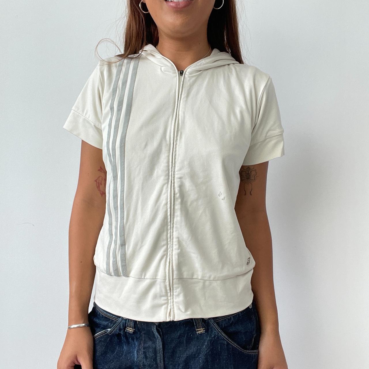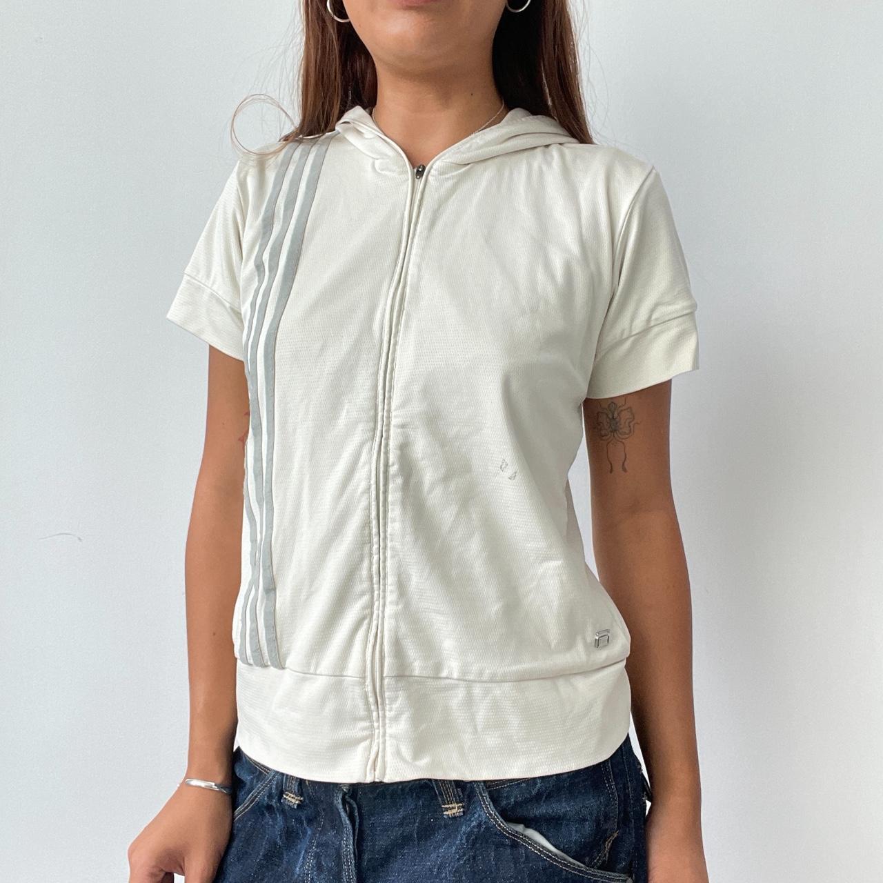Cream and white Adidas zip up hoodie, zip is working but longer bit has come off, size S-M