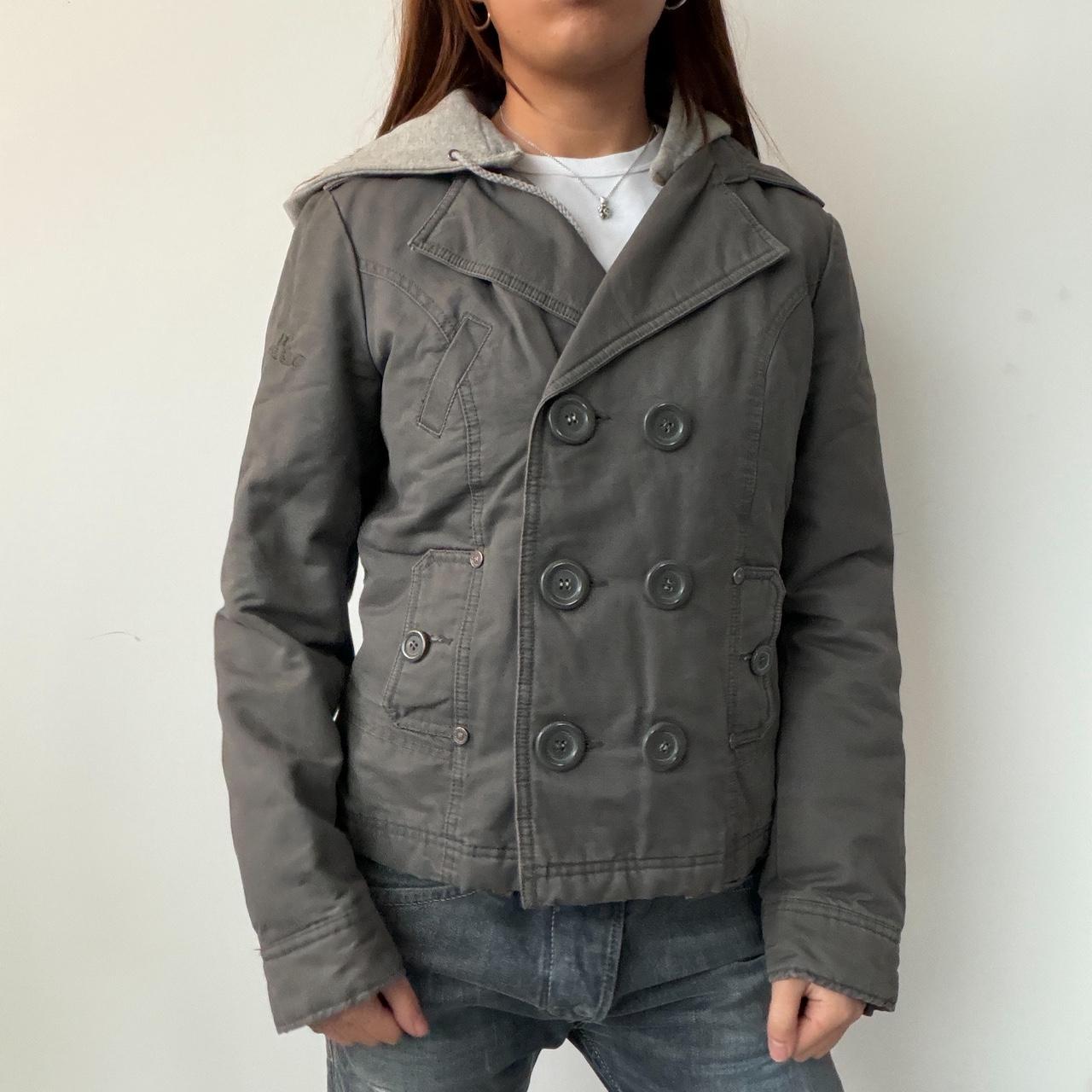 Vintage grey double breasted jacket with grey hood• size M