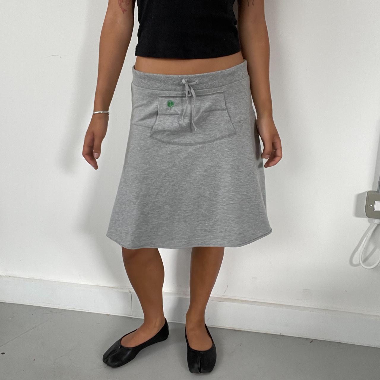 Grey midi skirt with drawstring waist and pockets, size S-M