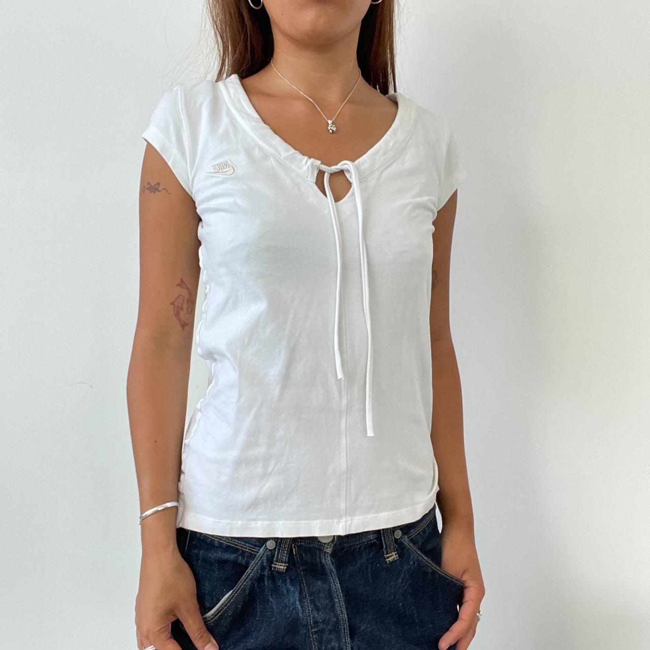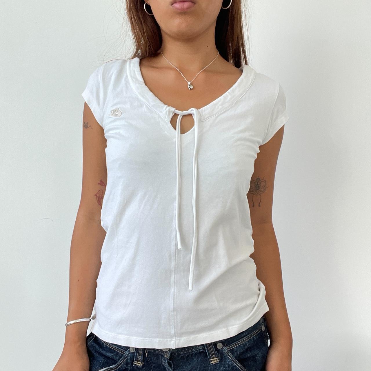 White tie-neck Nike top with a cute, feminine touch, size S-M